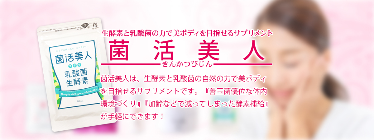 菌活美人は、生酵素と乳酸菌の自然の力で美ボディを目指せるサプリメントです。「善玉菌優位な体内環境づくり」「加齢などで減ってしまった酵素補給」が手軽にできます!